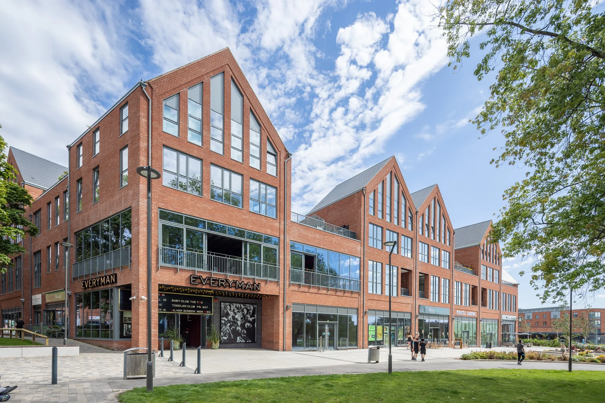 The development encompasses a total of 39,891 square feet dedicated to residential properties, which consist of thirty-one apartments and three townhouses, alongside a Premier Inn hotel. Additionally, the project features more than 43,000 square feet allocated for both food and non-food retail spaces, which includes a new Aldi, an 11,862 square foot cinema, a new play area, and enhanced infrastructure such as access roads and parking facilities. The project emphasises the importance of correctly specifying architectural powdercoating of roofline pressings, gutters and rainwater pipes as well as windows, doors and curtain walls, to ensure matching colours and gloss levels.